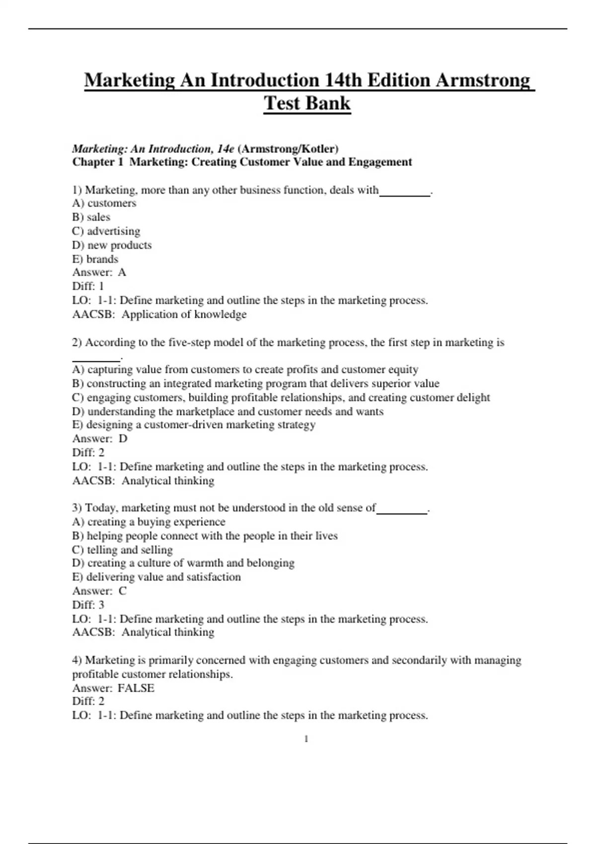 Test Bank for Marketing An Introduction 14th Edition Armstrong / All Chapters 1 - 16 / Full Complete 2023
