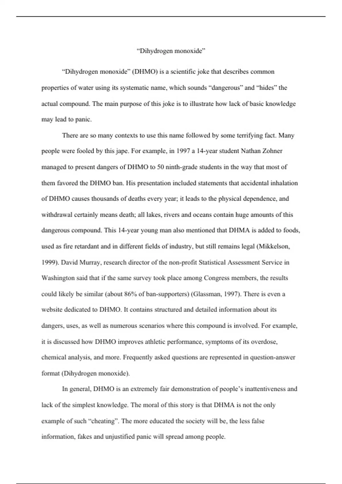 them favored the DHMO ban. His presentation included statements that accidental inhalation