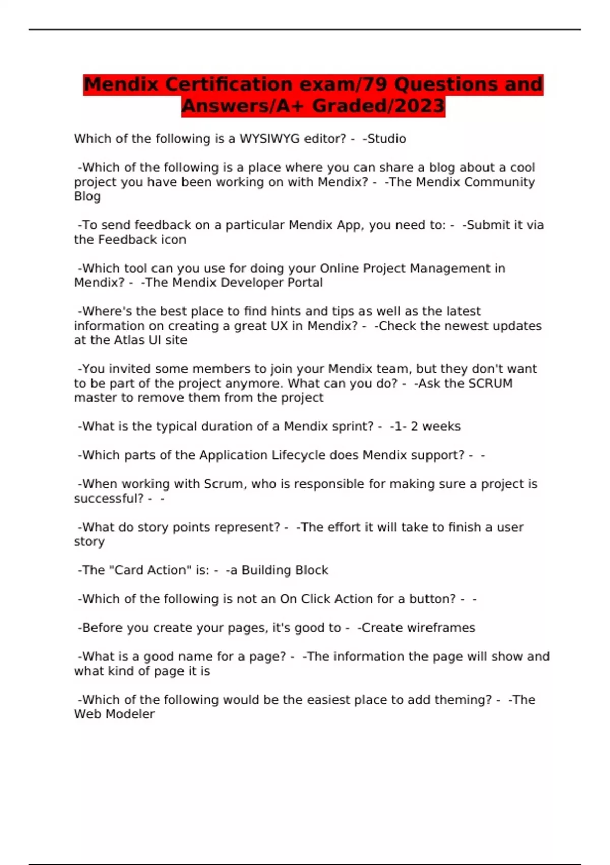 Mendix Certification exam/79 Questions and Answers/A+ Graded/2023