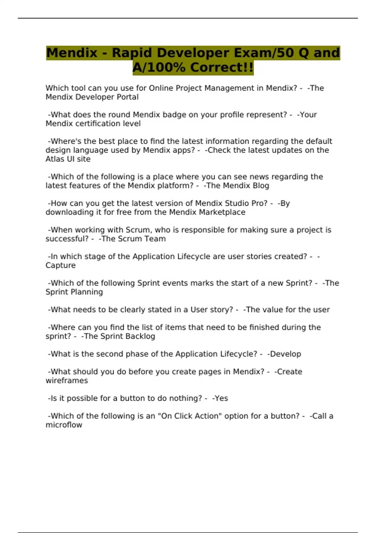 Mendix - Rapid Developer Exam/50 Q and A/100% Correct!!