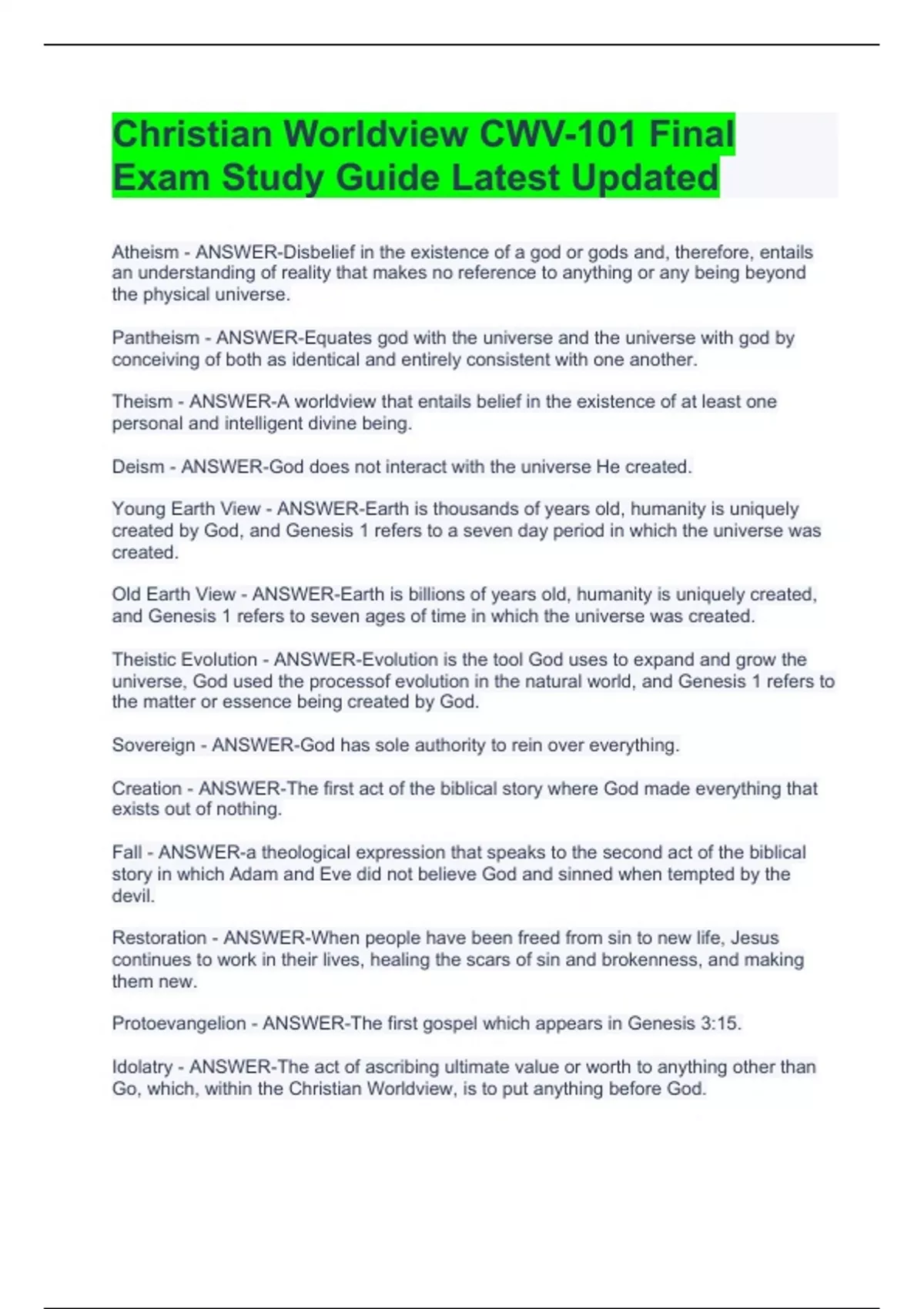 Christian Worldview CWV-101 Final Exam Study Guide Latest Updated