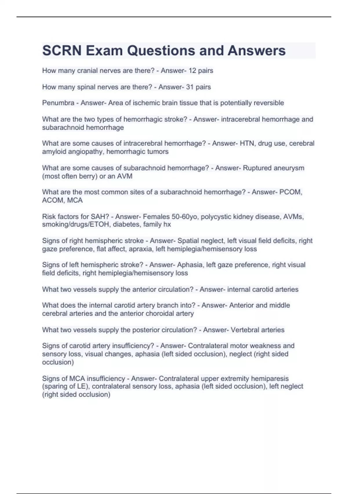 SCRN Exam Questions and Answers