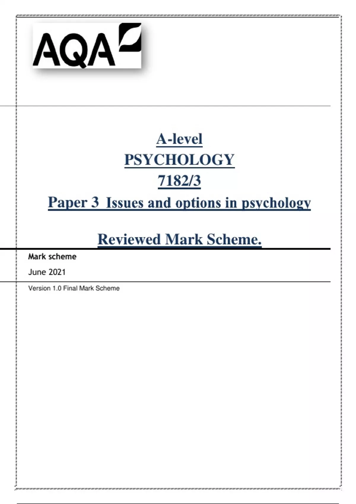 A-level PSYCHOLOGY 7182/3 Paper 3 Issues and options in psychology Reviewed Mark Scheme.