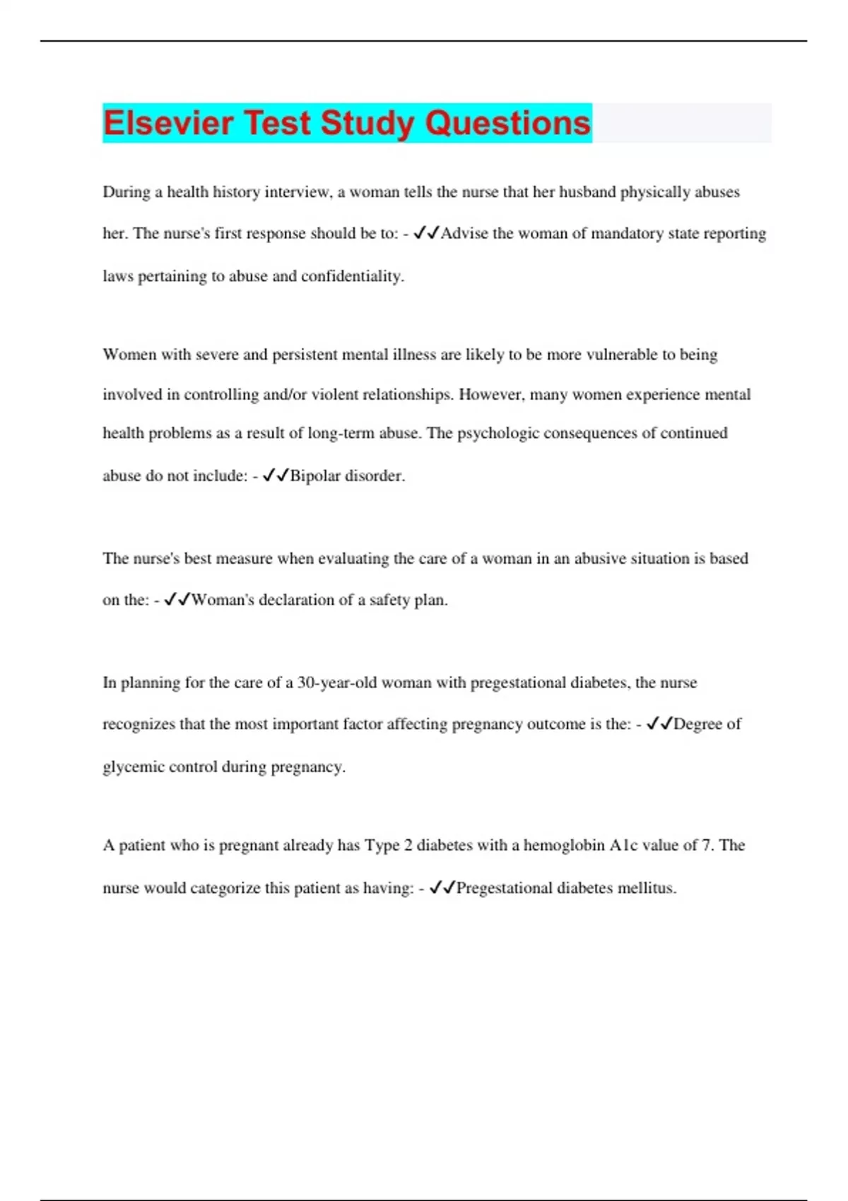 Elsevier Test Study Questions | 65 Questions with 100% Correct Answers | Updated & Verified