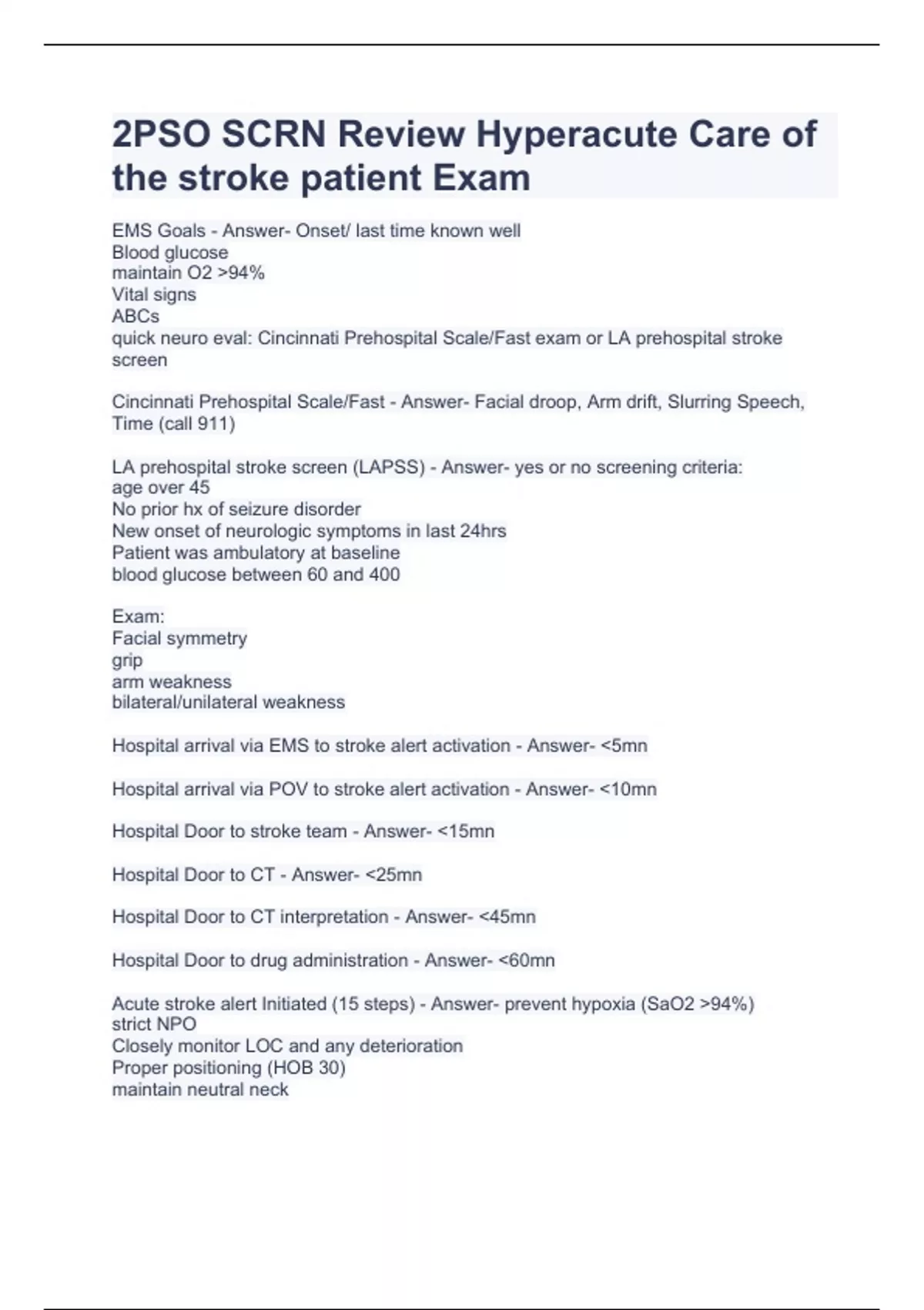 2PSO SCRN Review Hyperacute Care of the stroke patient Exam