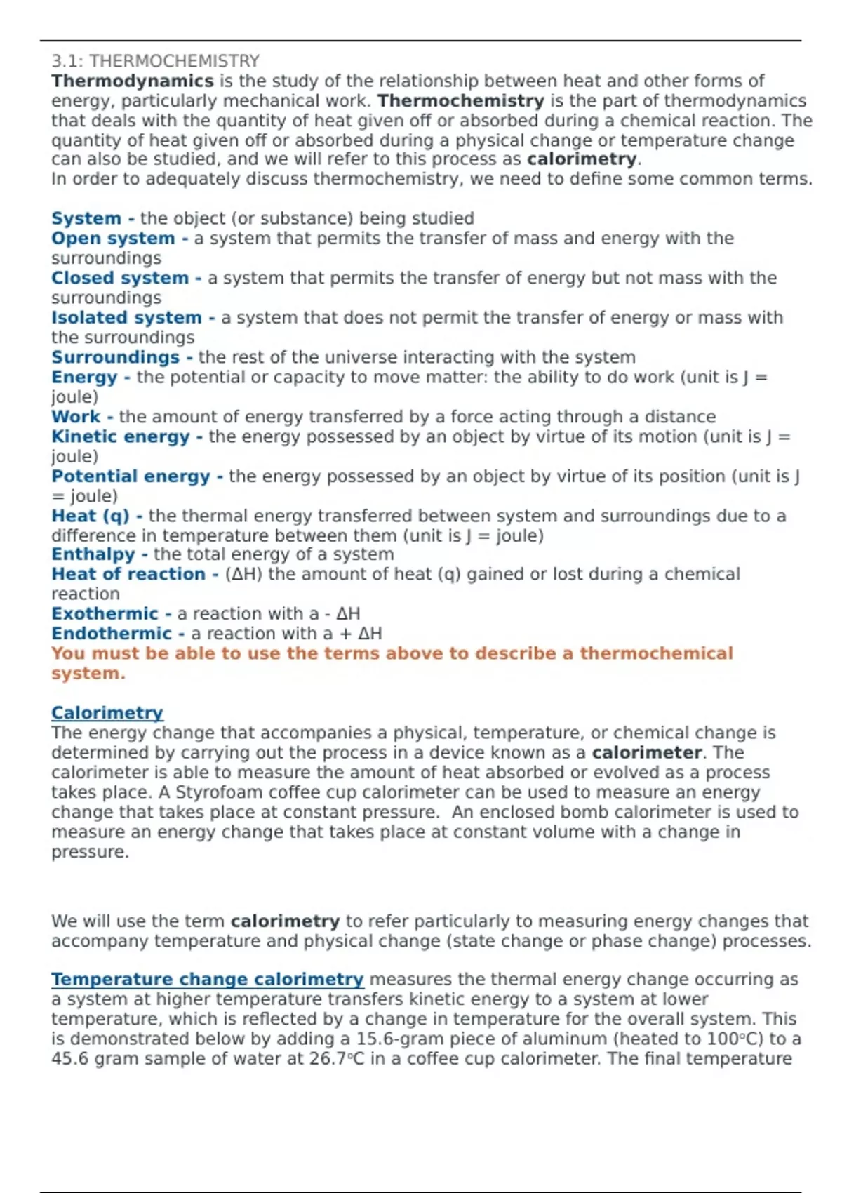 CHEM 103 module 3 notes THERMOCHEMISTRY
