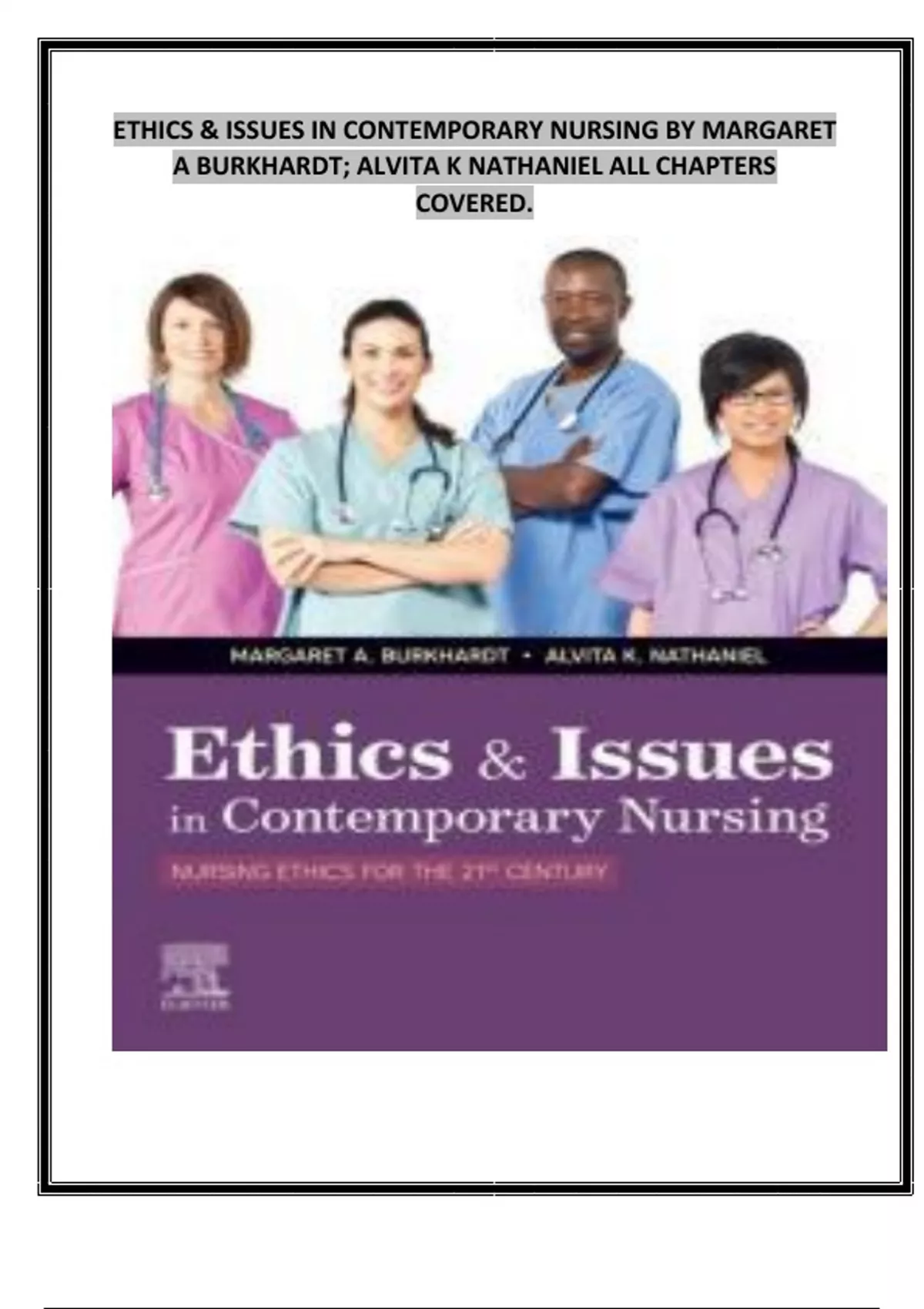 ETHICS & ISSUES IN CONTEMPORARY NURSING BY MARGARET A BURKHARDT; ALVITA K NATHANIEL ALL CHAPTERS COVERED.