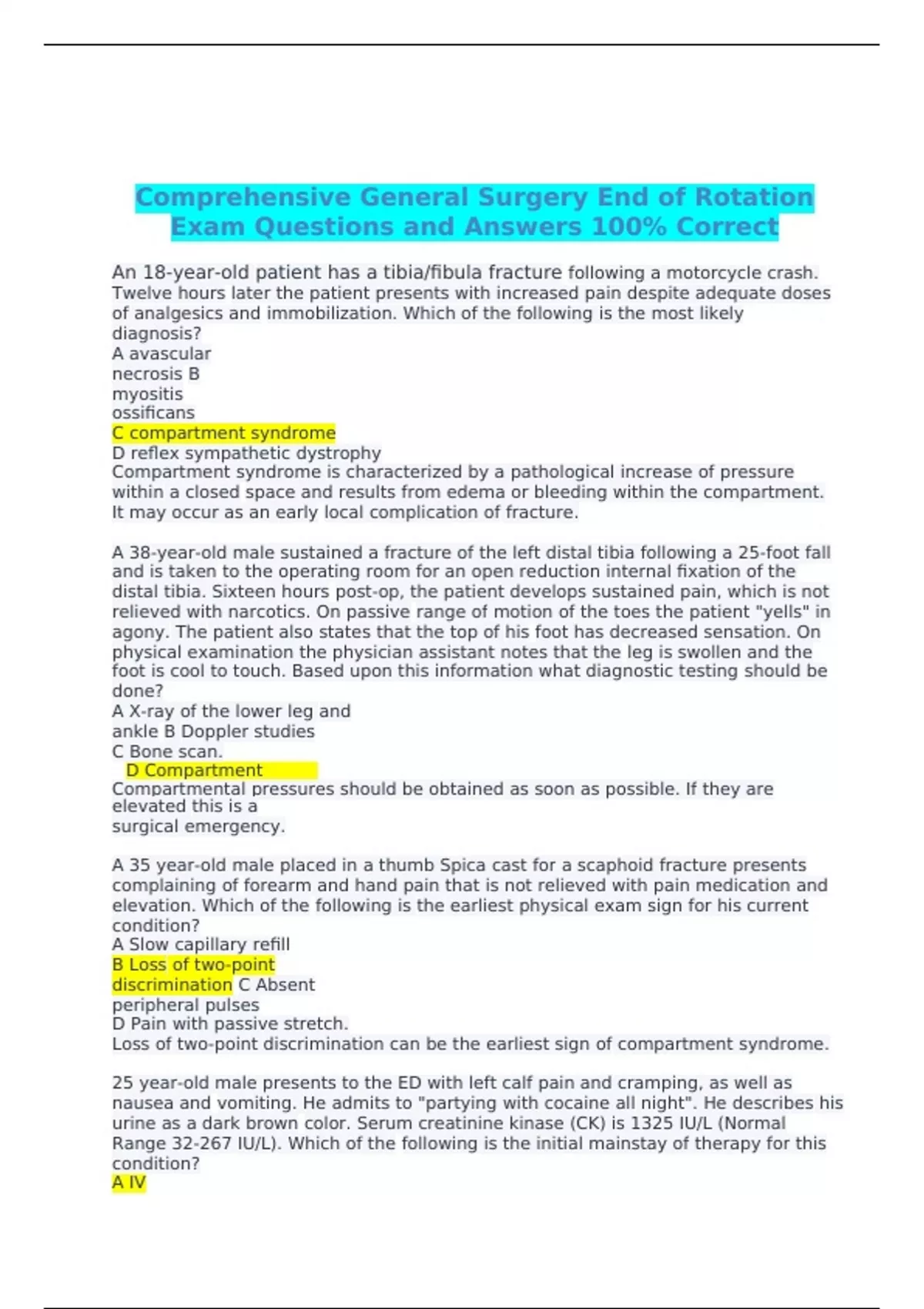 Comprehensive General Surgery End of Rotation Exam Questions and Answers 100% Correct
