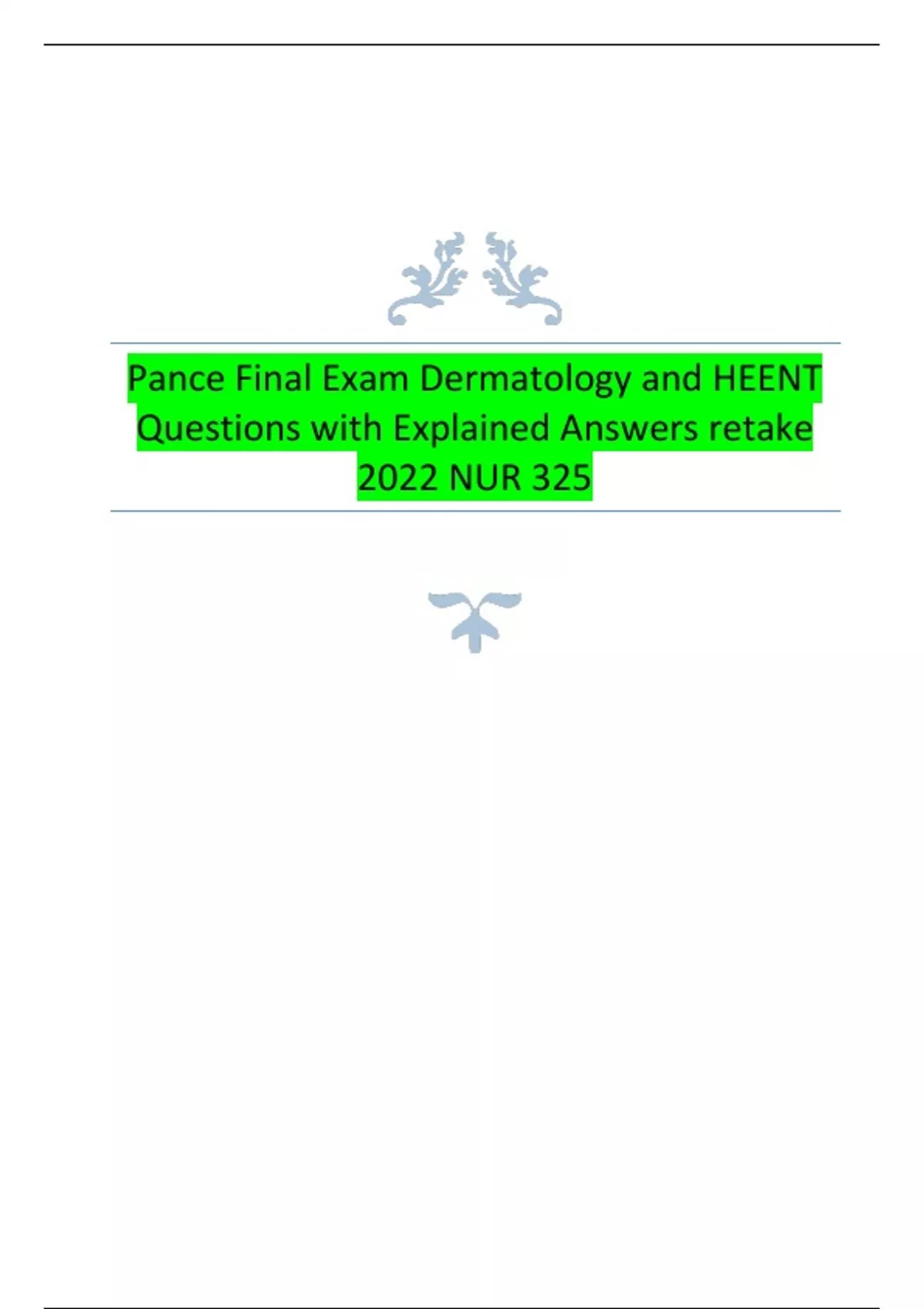 Pance Final Exam Dermatology and HEENT Questions with Explained Answers retake 2022 NUR 325