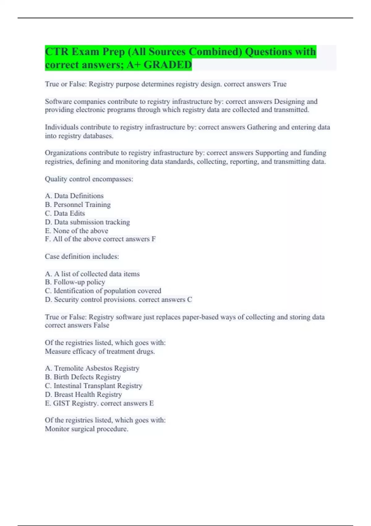 CTR Exam Prep (All Sources Combined) Questions with correct answers; A+ GRADED