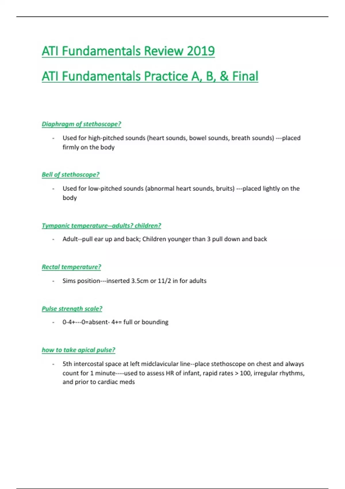 This is ATI Fundamentals Review 2019 ATI Fundamentals Practice A,B,&Final for most reliable best scores