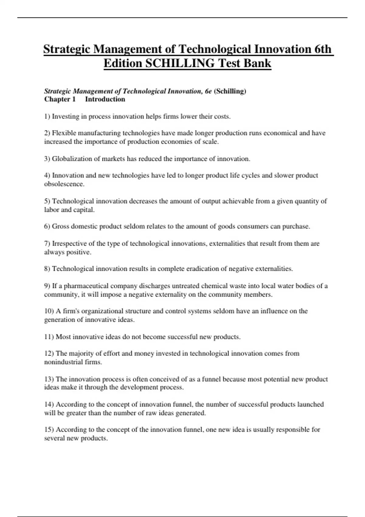 Test Bank for Strategic Management of Technological Innovation 6th Edition SCHILLING / All Chapters 1 - 13 / Full Complete 2023