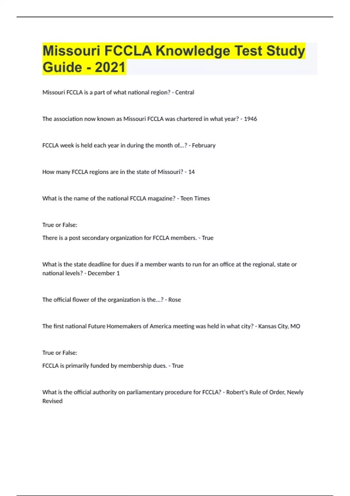 Missouri FCCLA Knowledge Test Stu