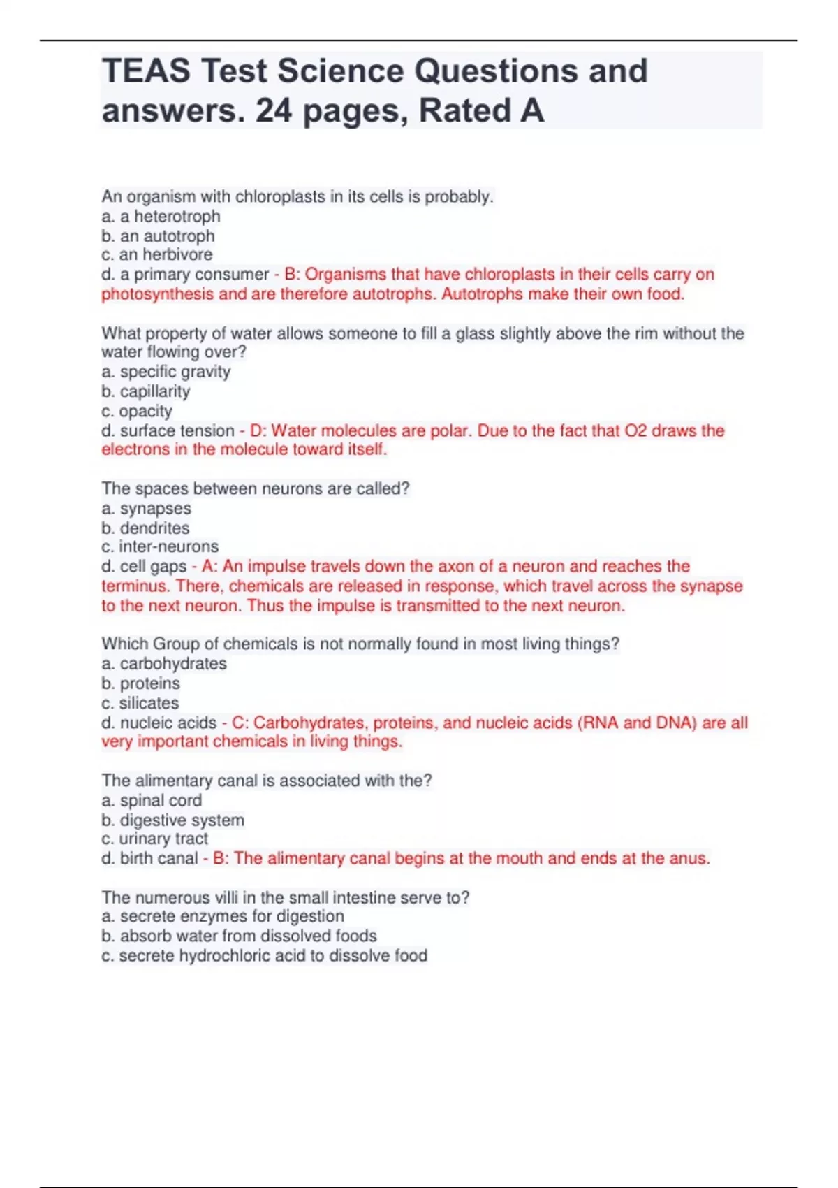 TEAS Test Science Questions and answers. 24 pages, Rated A