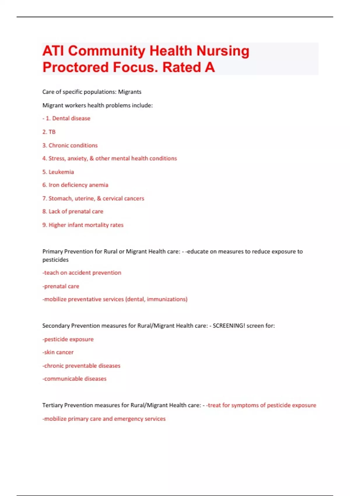 ATI Community Health Nursing Proctored Focus. 30 pages of rated A masterpiece.