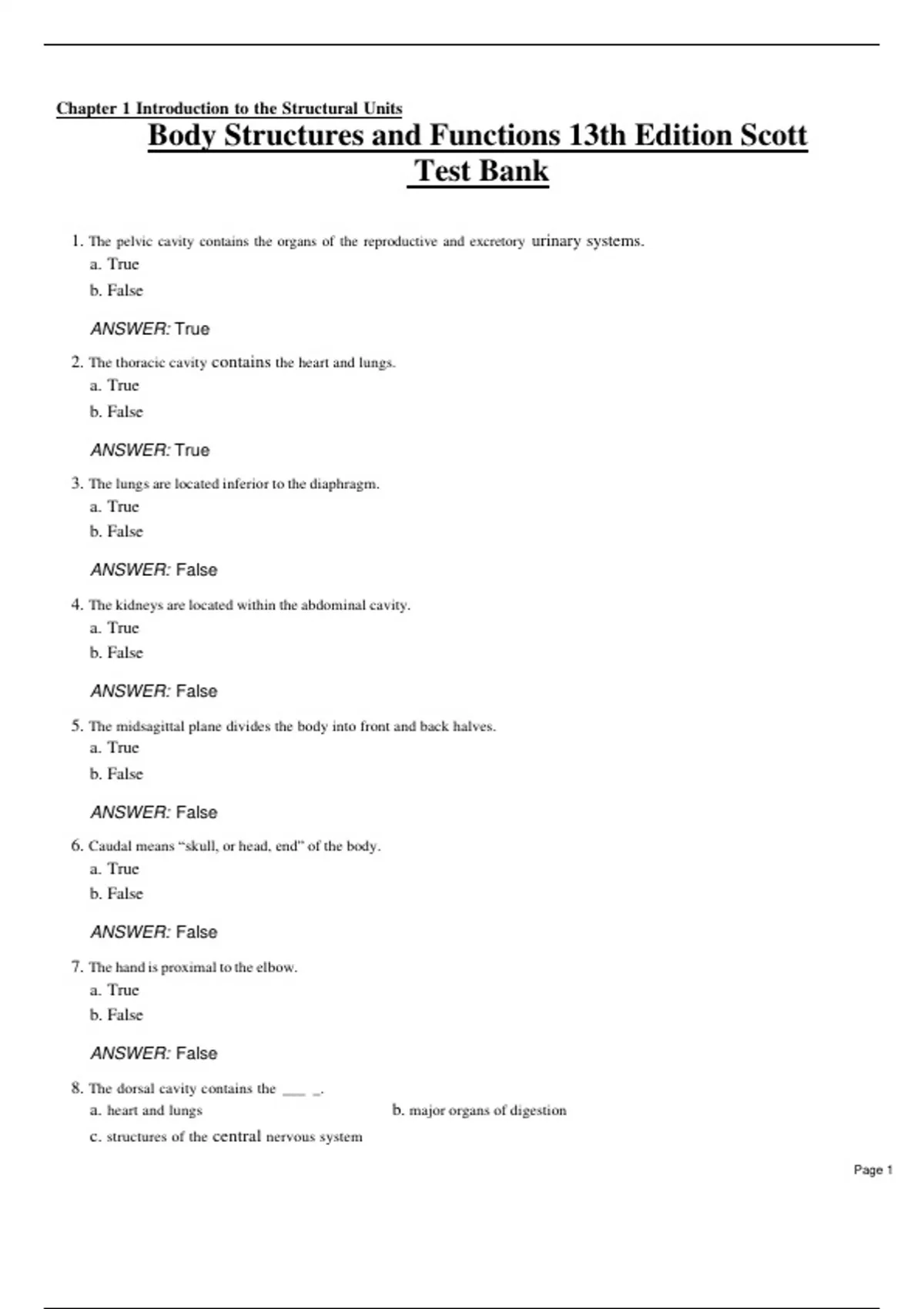 Body Structures and Functions 13th Edition Scott Test Bank Test Bank for Body Structures and Functions 13th Edition Scott/ All Chapters 1 - 22 / Full Complete 2023