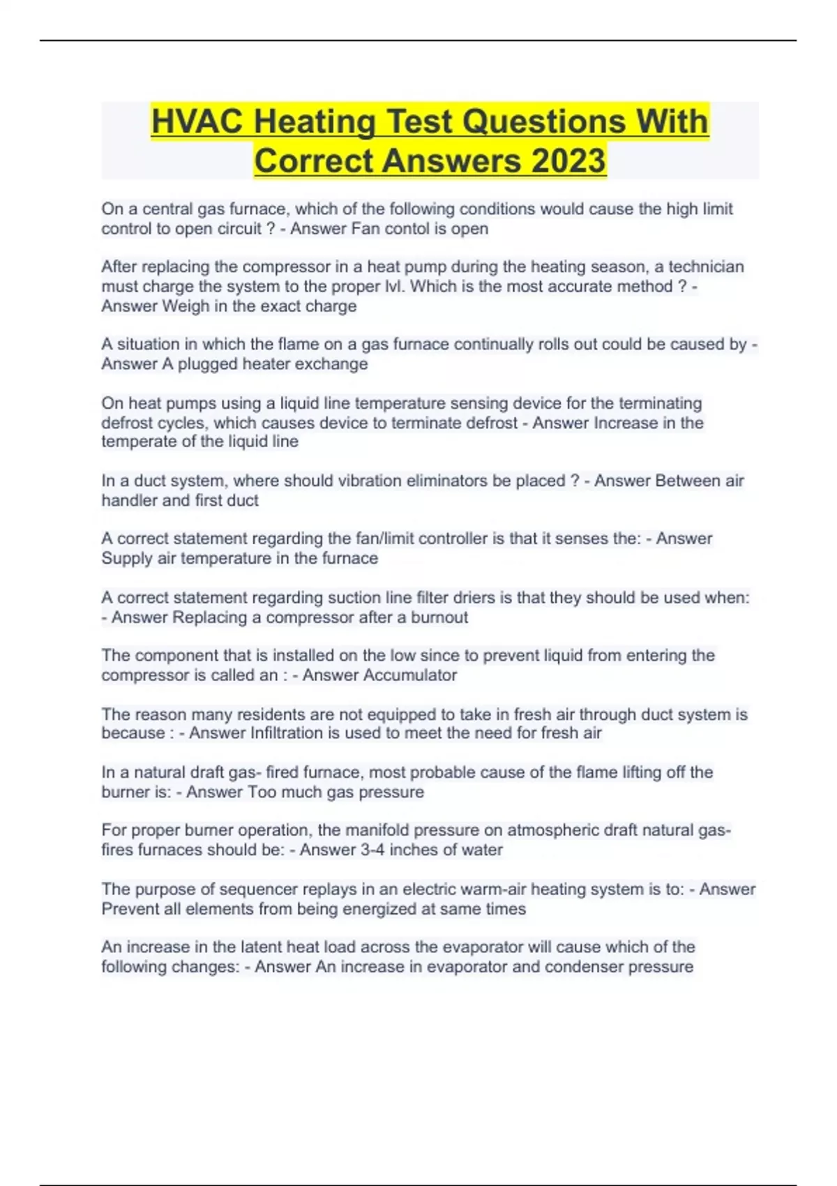 BUNDLE FOR HVAC REVISION EXAM QUESTIONS WITH CORRECT ANSWERS 2023