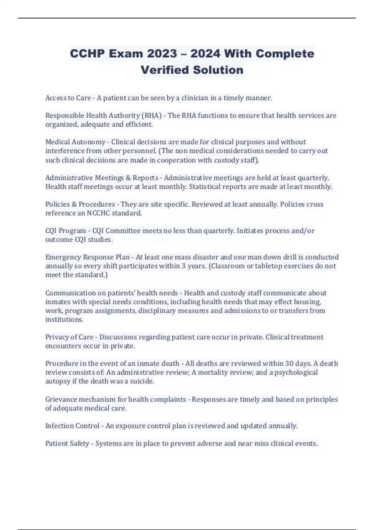 CCHP Exam 2023 – 2024 With Complete Verified Solution