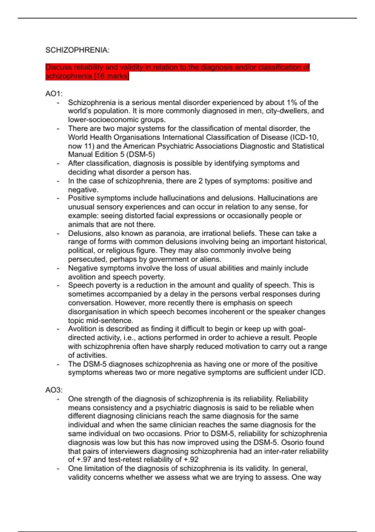 schizophrenia [16 marks]