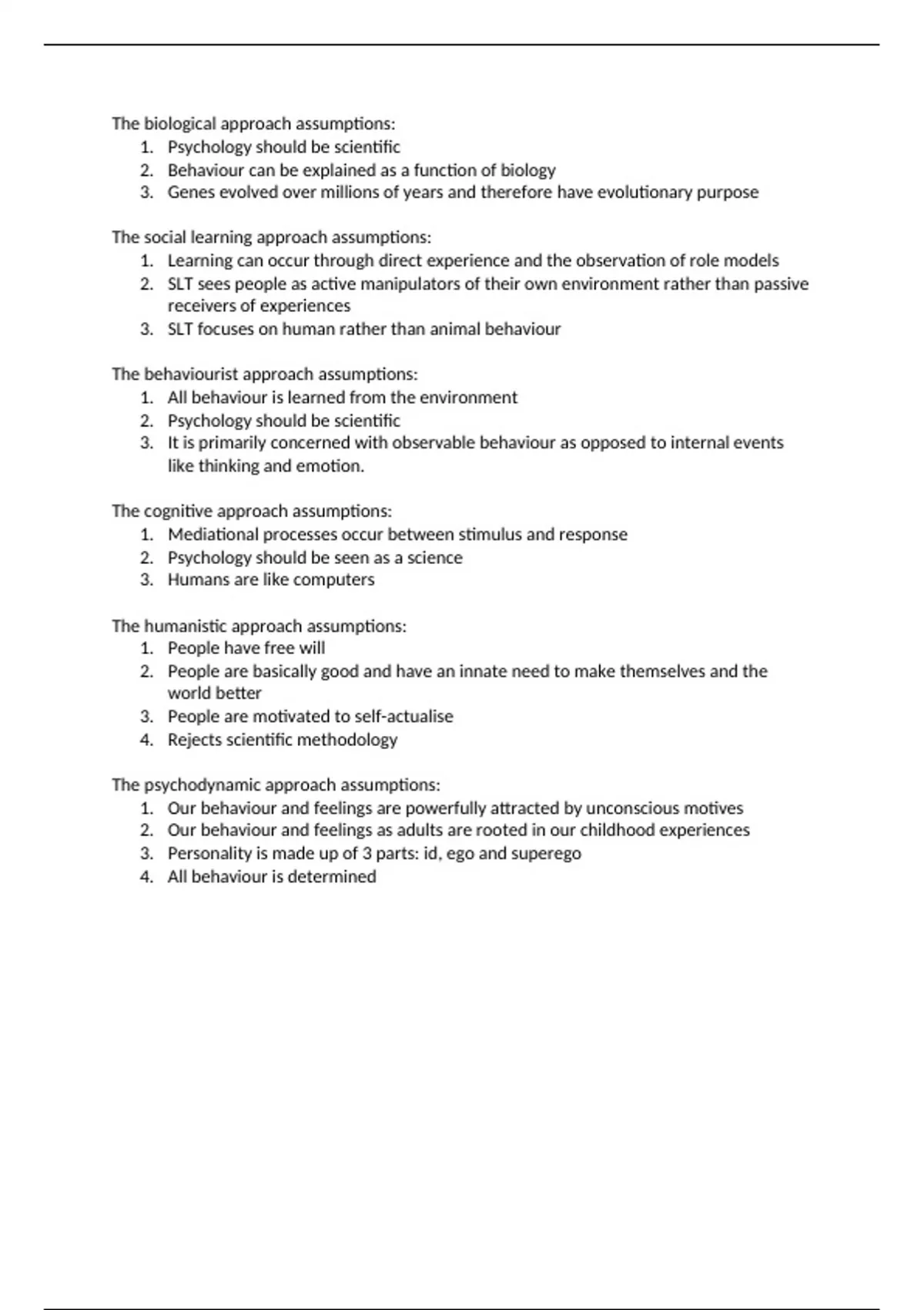 The behaviourist approach assumptions: