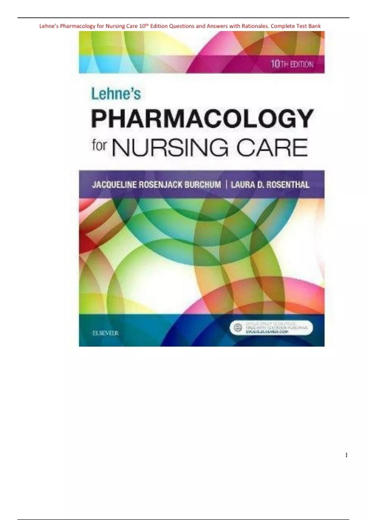 Test Bank for Lehne’s Pharmacology for Nursing Care 10th Edition Questions and Answers with Rationales, Complete Test Bank