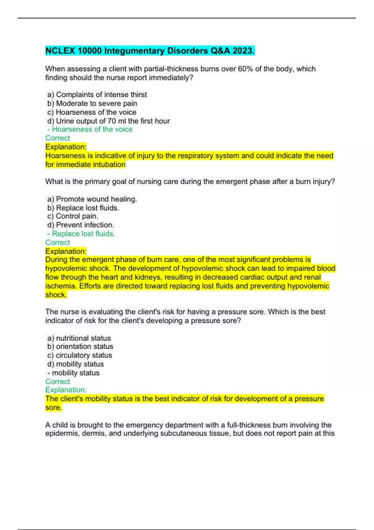 NCLEX 10000 Integumentary Disorders Q&A 2023.