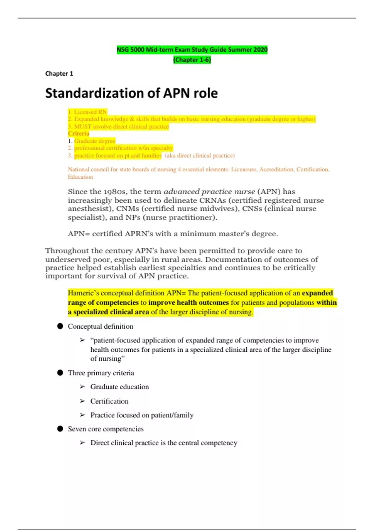 NSG 5000 Mid-term Exam Study Guide Summer 2020