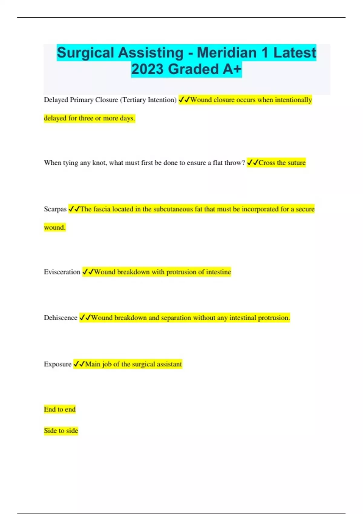 surgical assisting meridian 1 latest 2023 graded