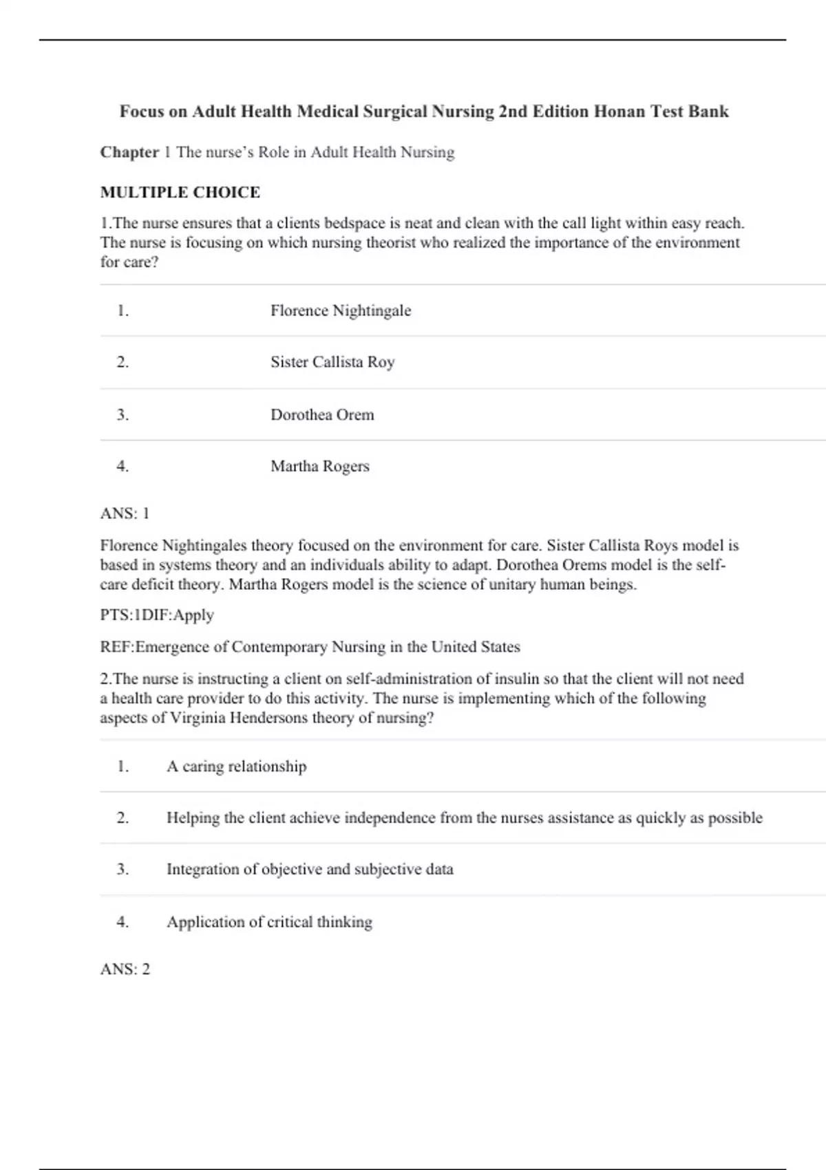 Focus on Adult Health Medical-Surgical Nursing, 2e Linda Honan (Test Bank) Focus on Adult Health Medical-Surgical Nursing, 2e Linda Honan (Test Bank)