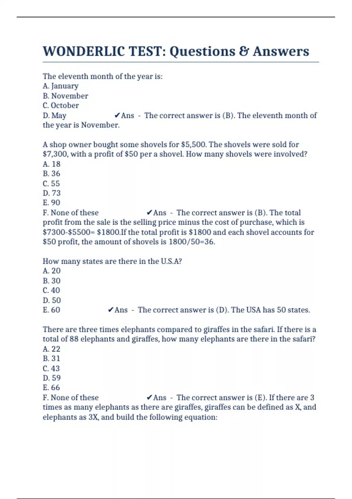 WONDERLIC TEST: Questions & Answers
