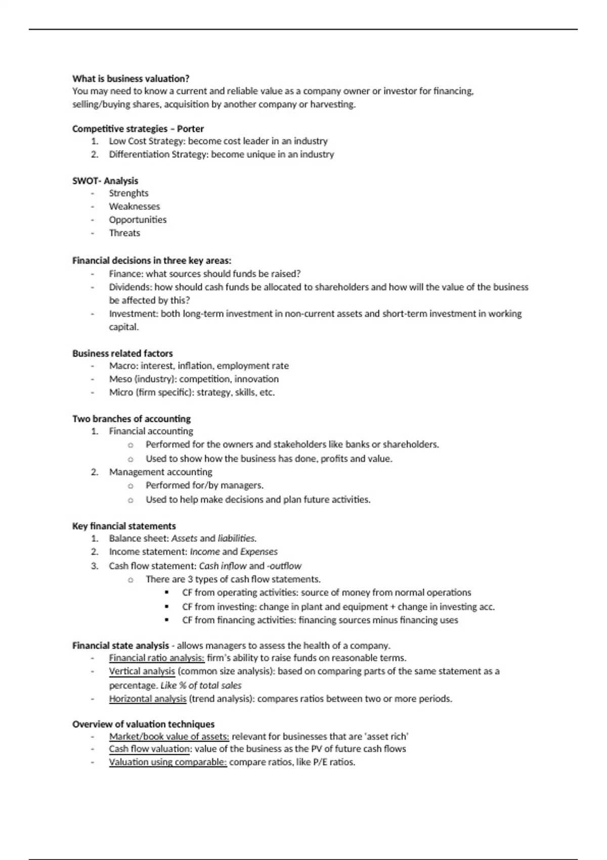 - Cash flow valuation: value of the business as the PV of future cash flows
