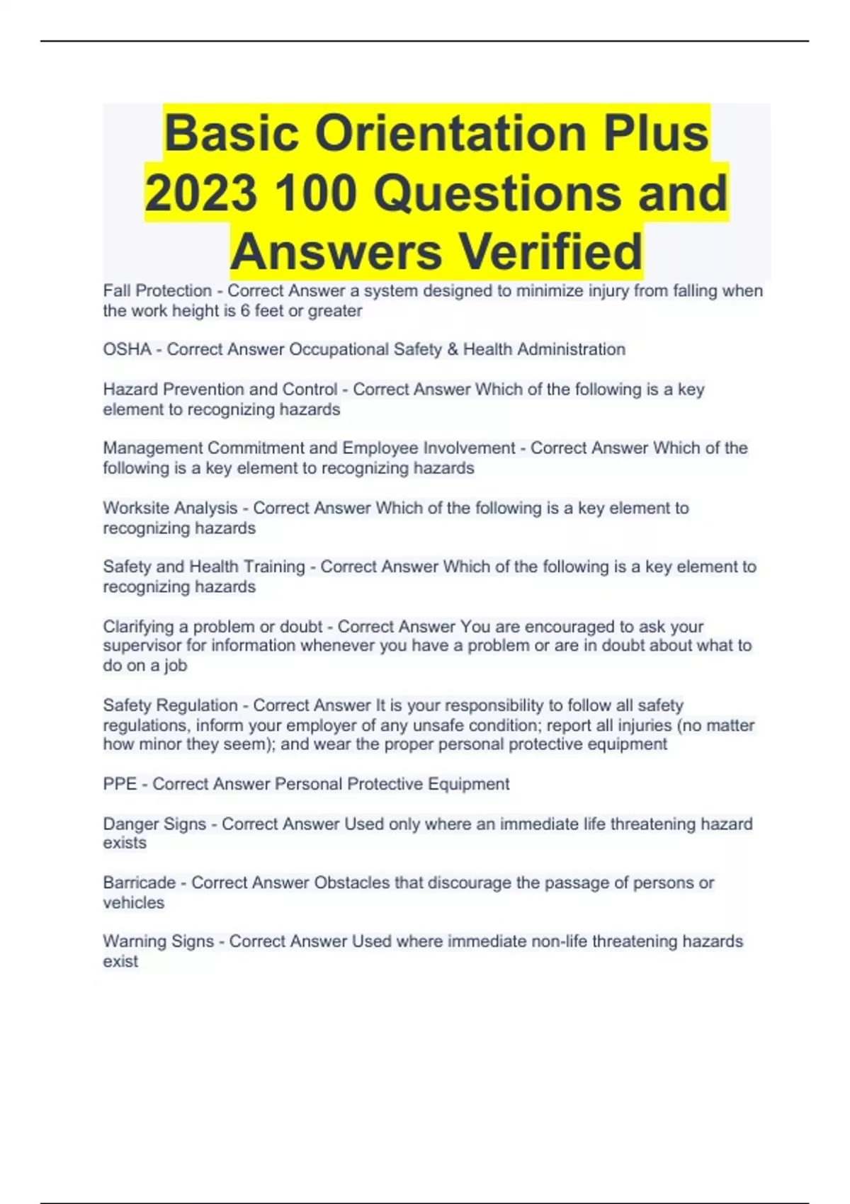 Safety Regulation - Correct Answer It is your responsibility to follow all safety regulations, inform your employer of any unsafe condition; report all injuries (no matter how minor they seem); and wear the proper personal protective equipment