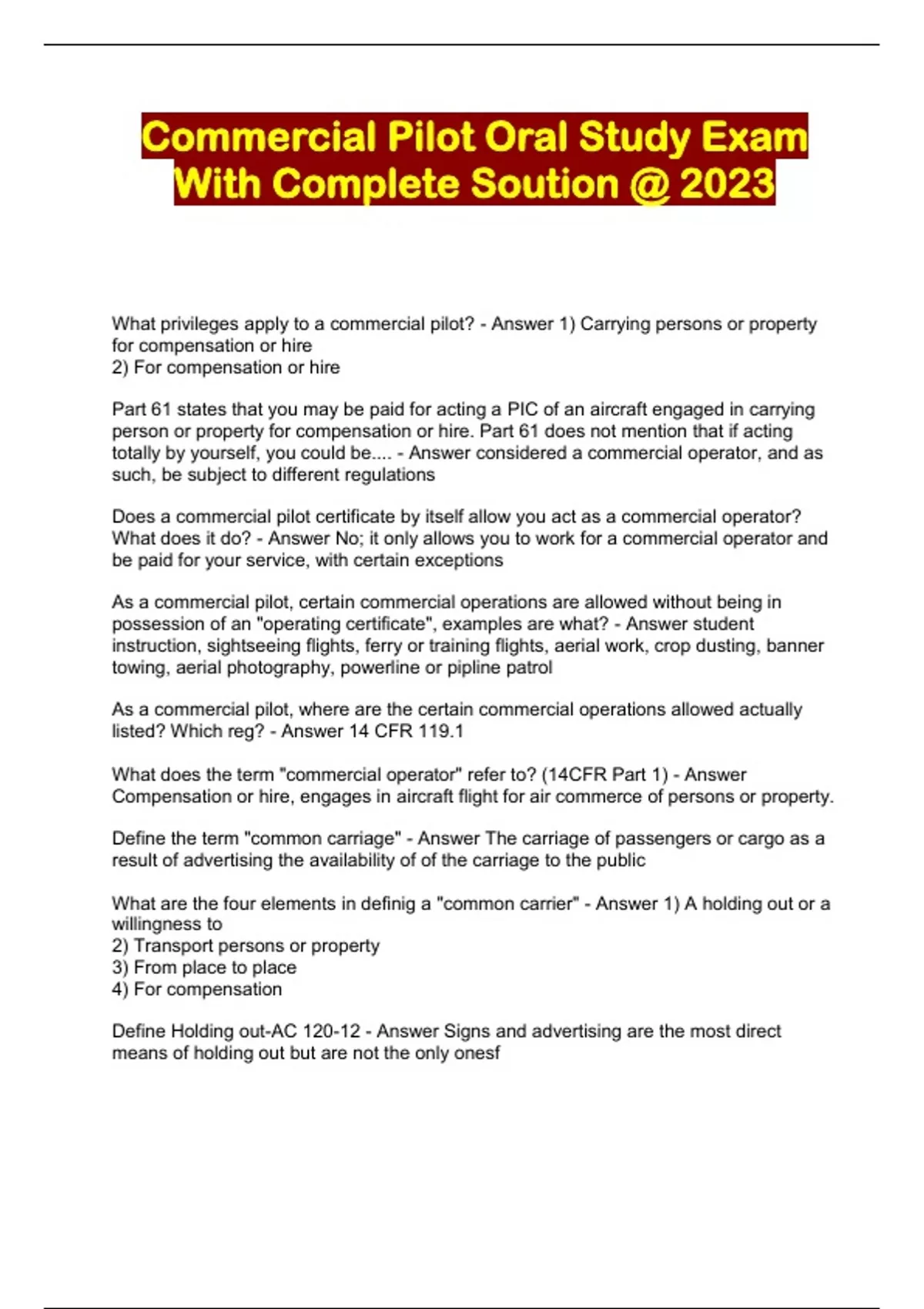 Commercial Pilot Oral Study Exam With Complete Soution @ 2023...