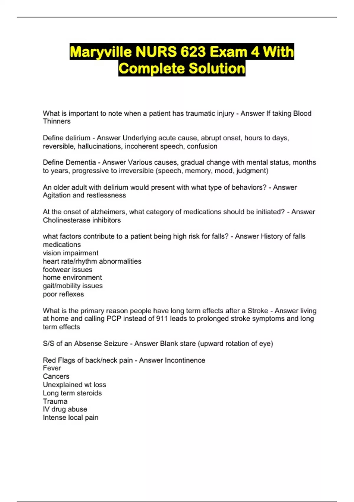 Maryville NURS 623 Exam 4 With Complete Solution...
