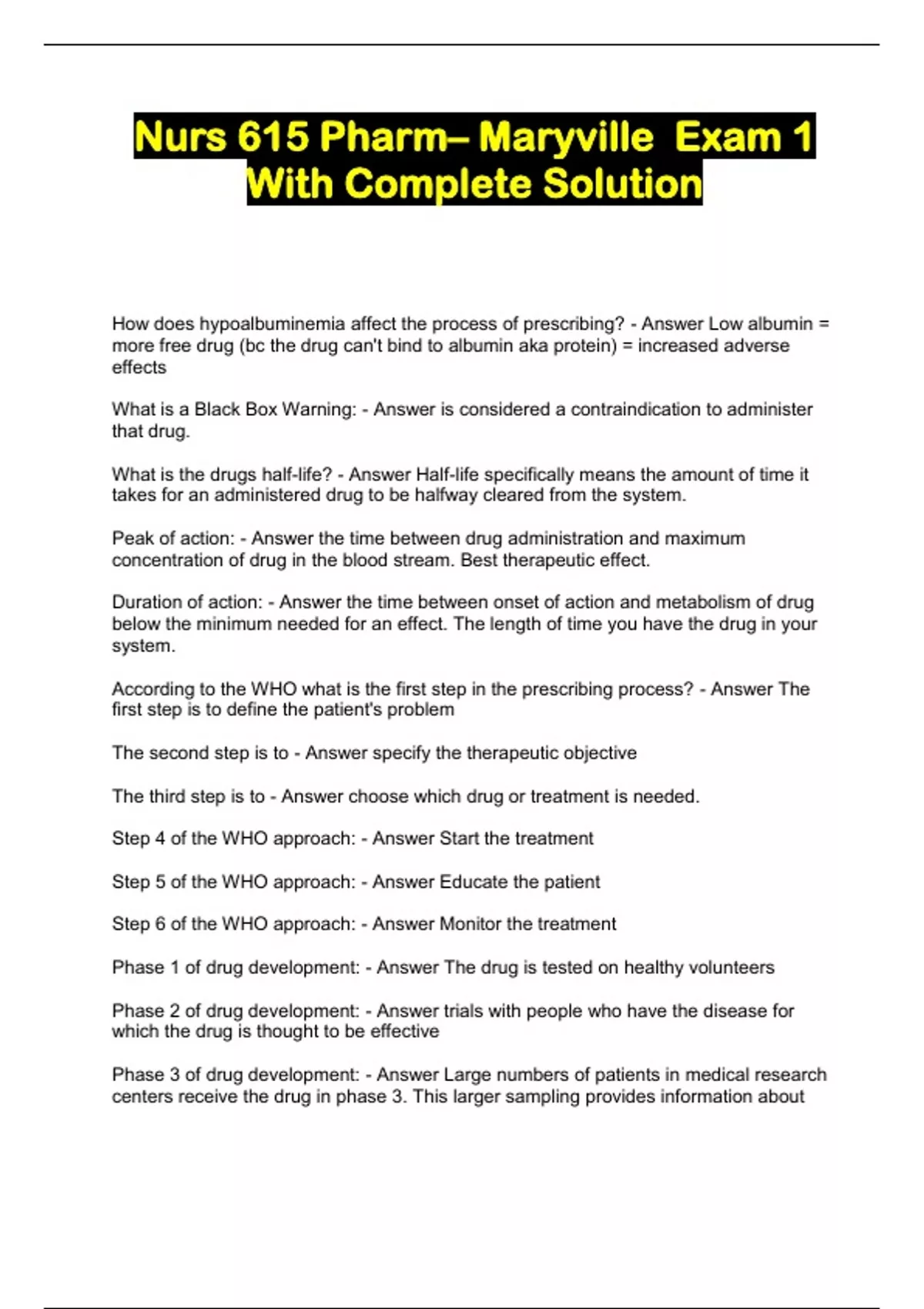 Nurs 615 Pharm– Maryville Exam 1 With Complete Solution...