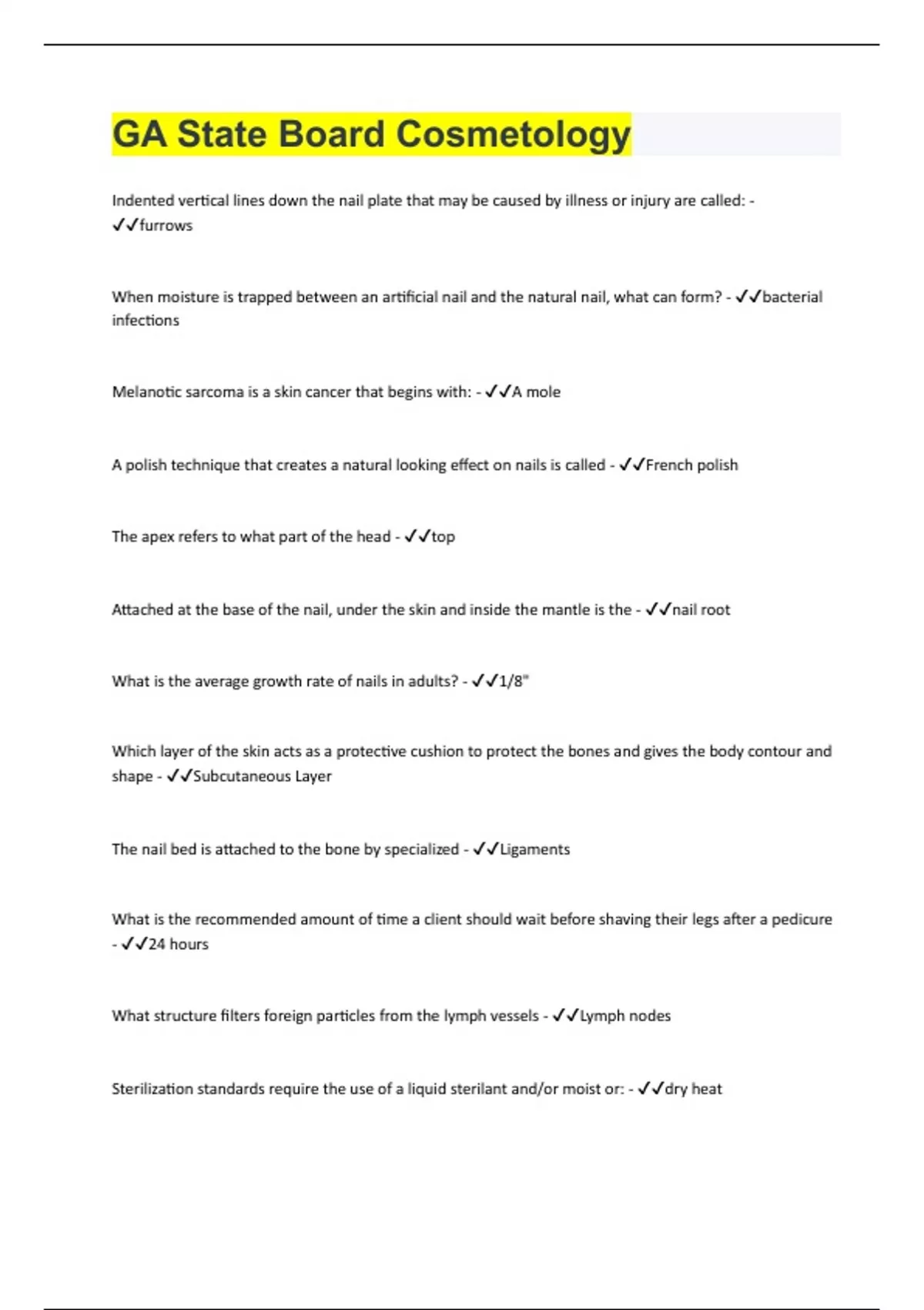 GA State Board Cosmetology| Questions with 100% Correct Answers | Verified