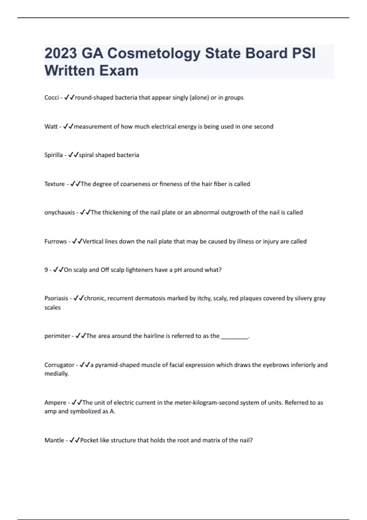 - 20023 GA Cosmetology State Board PSI Written