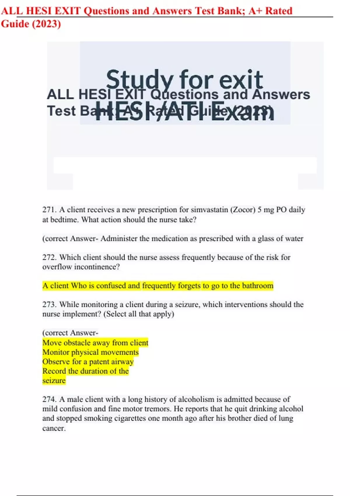 ALL HESI EXIT Questions and Answers Test Bank; A+ Rated Guide (2023) USE (CTRL + F) to search you question (answered) This is the ultimate Distinction exam Help ever !!