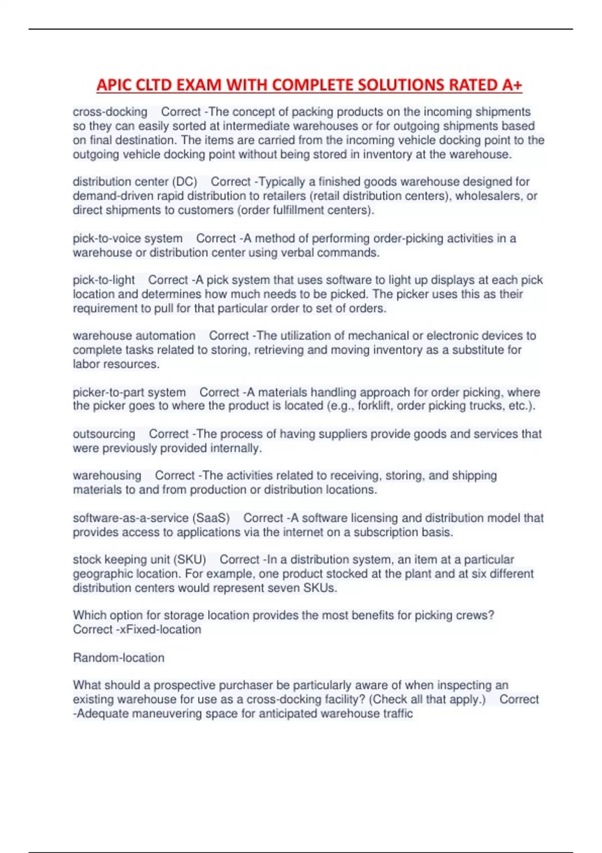 APIC CLTD EXAM WITH COMPLETE SOLUTIONS RATED A+