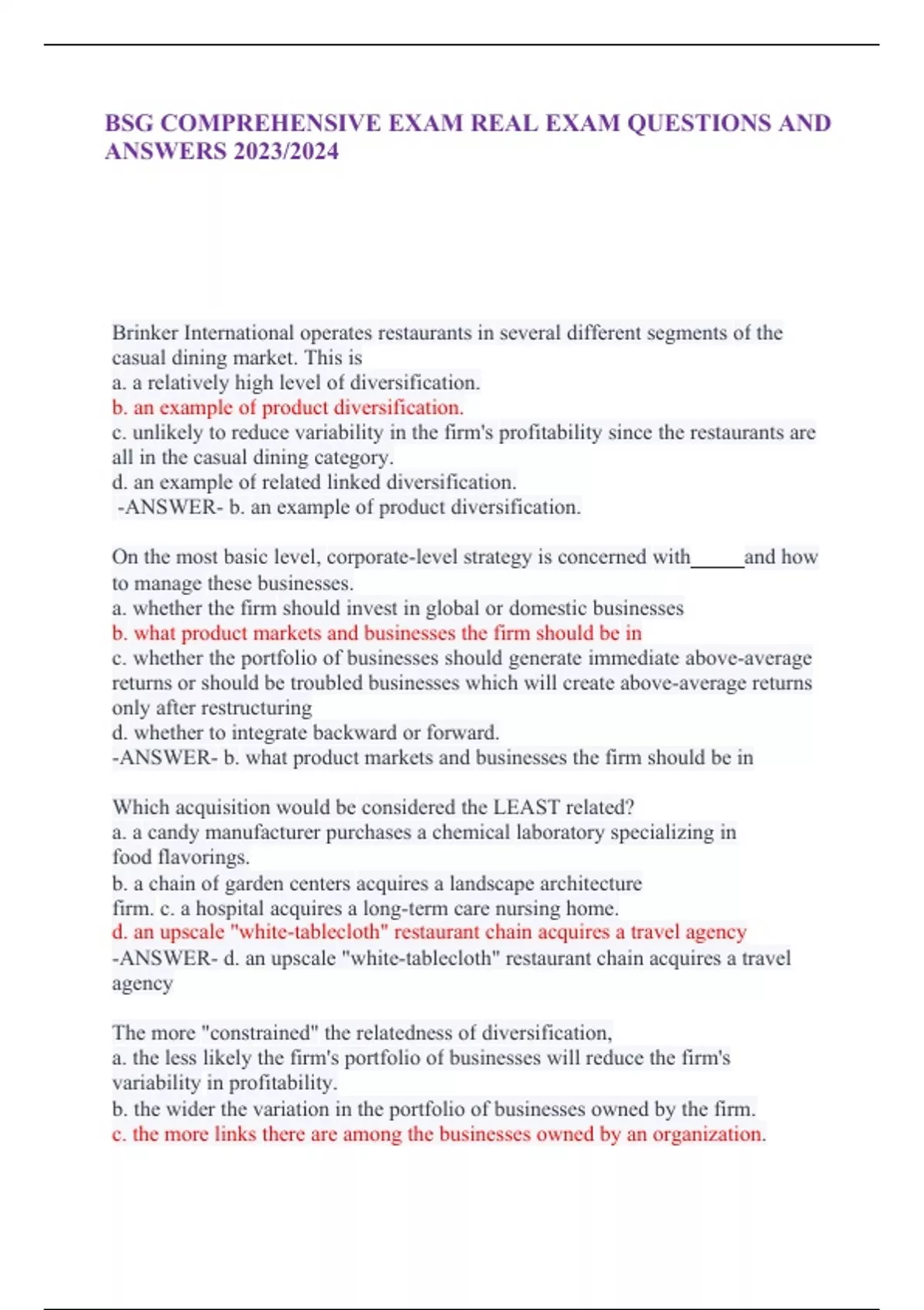 BSG COMPREHENSIVE EXAM REAL EXAM QUESTIONS AND ANSWERS 2023/2024