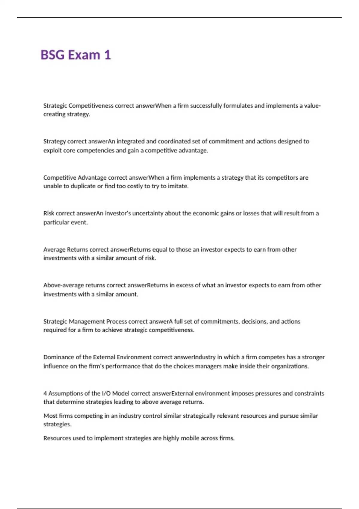 Exam of 10 pages for the course BSG at BSG (BSG Exam 1)