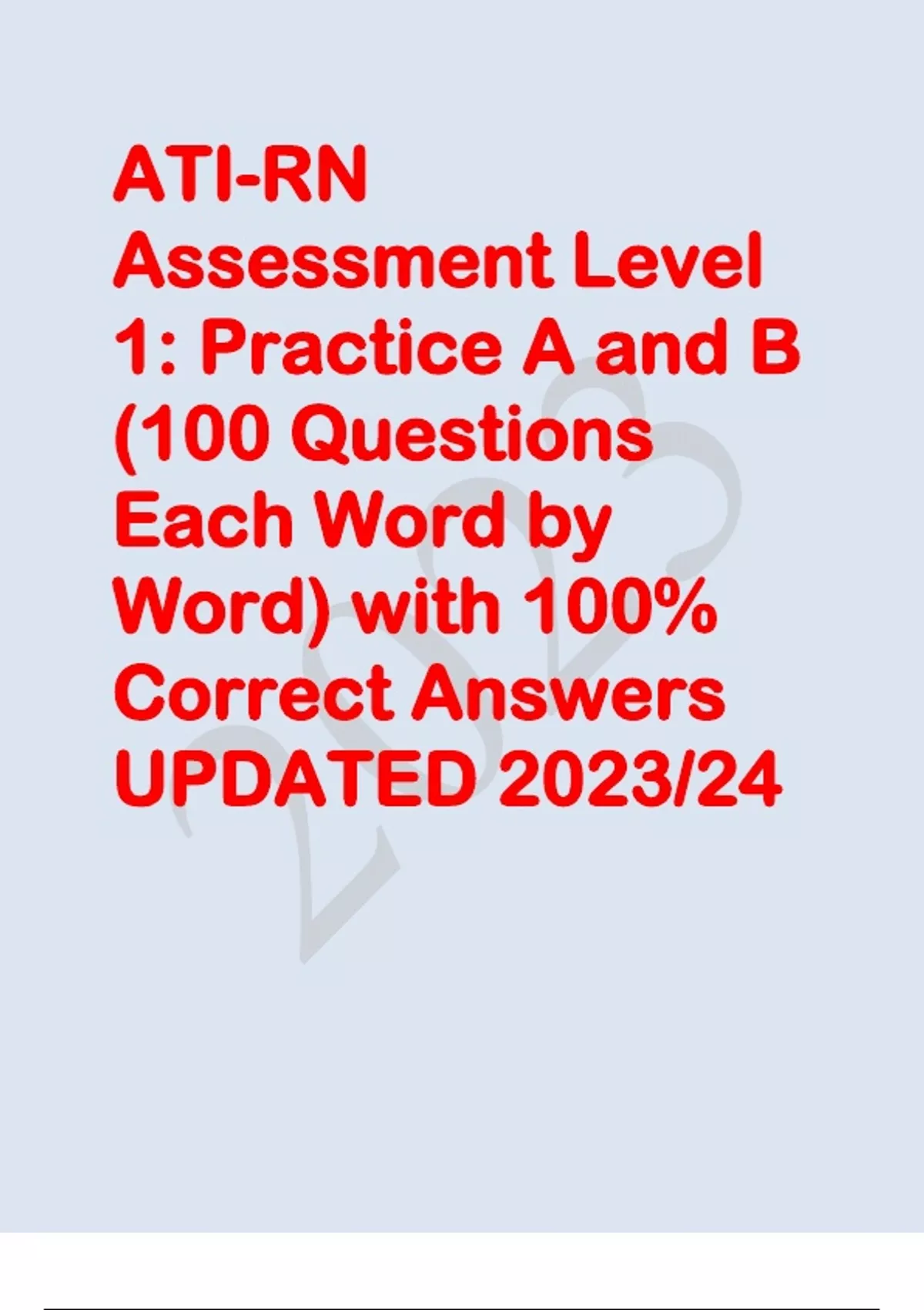 ATI-RN Assessment Level 1: Practice A and B (100 Questions Each Word by Word) with 100% Correct Answers UPDATED JUNE 2023