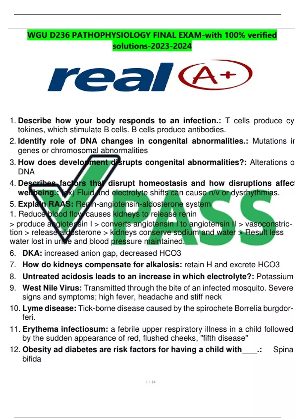 WGU D236 PATHOPHYSIOLOGY FINAL EXAM-with 100% verified solutions-WGU D236 PATHOPHYSIOLOGY FINAL EXAM-with 100% verified solutions-