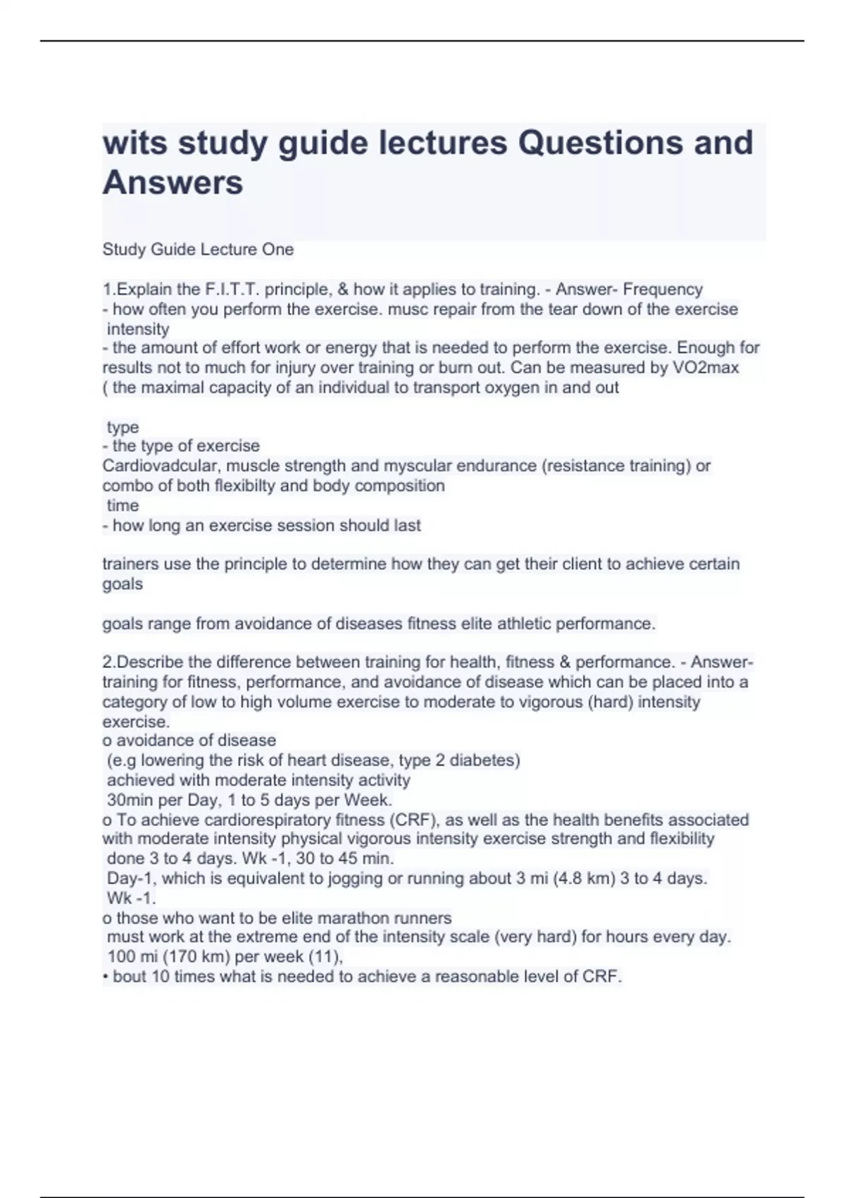 wits study guide lectures questions and answers