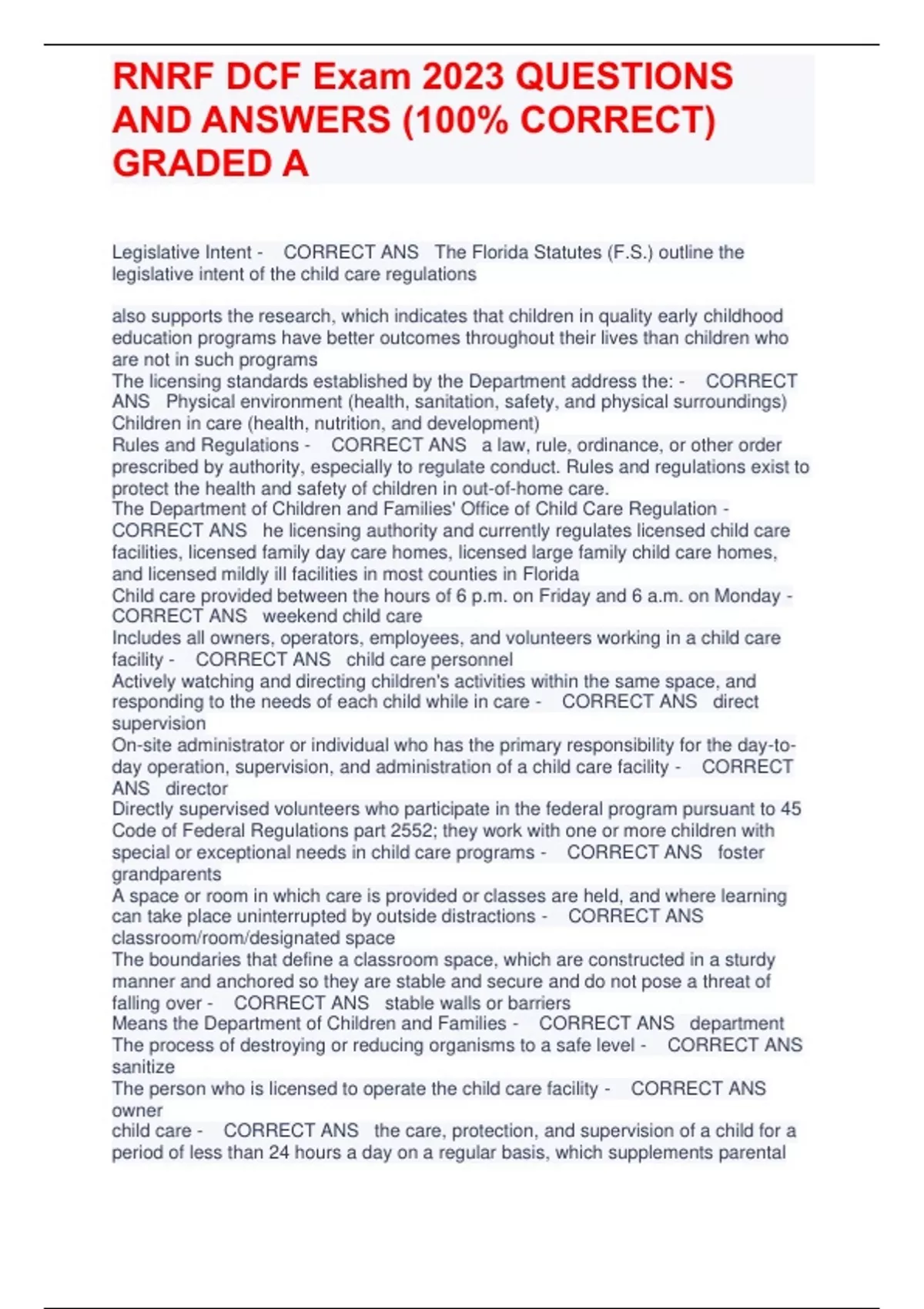 RNRF DCF Exam 2023 QUESTIONS AND ANSWERS (100% CORRECT) GRADED A