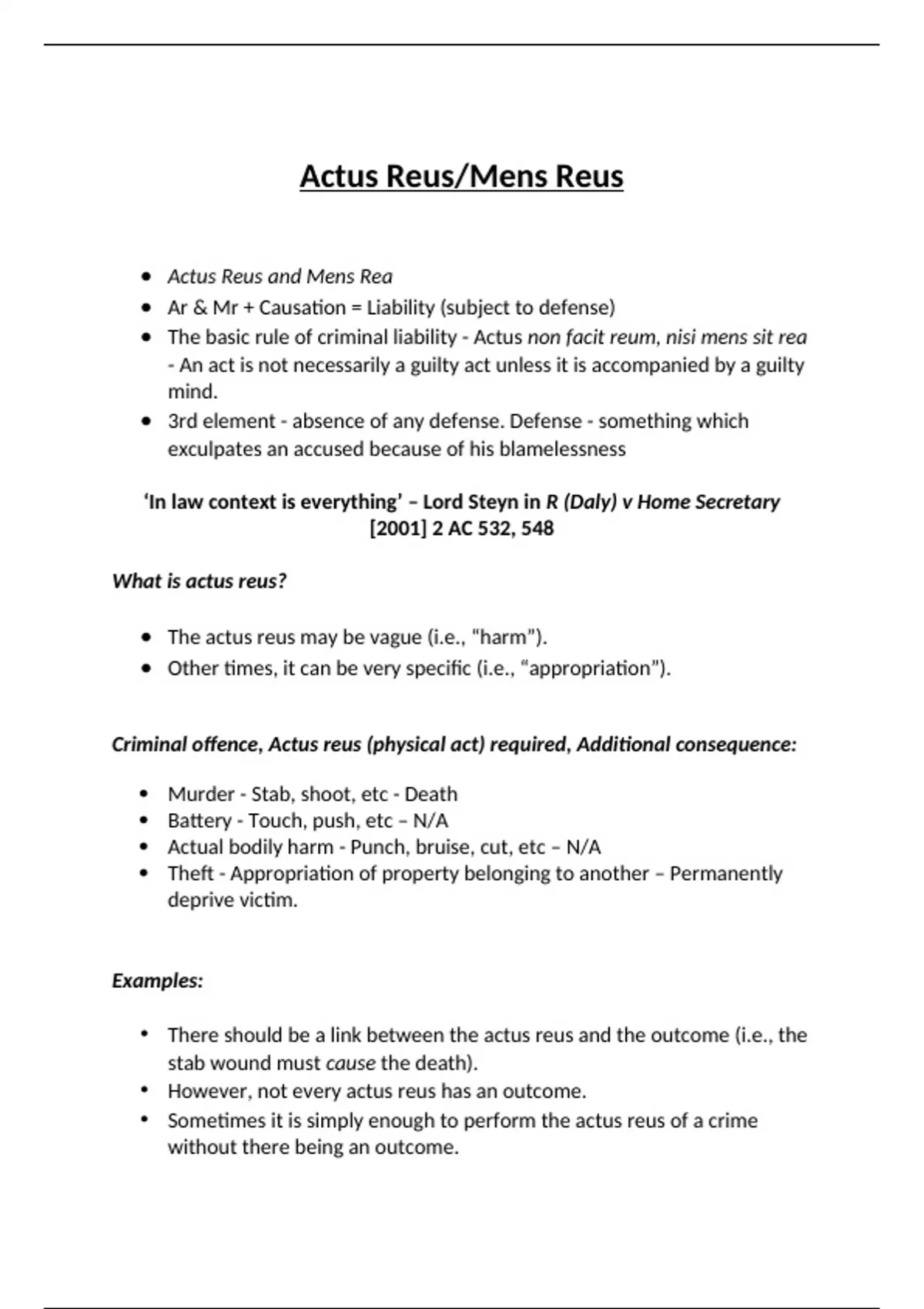• Actus Reus and Mens Rea