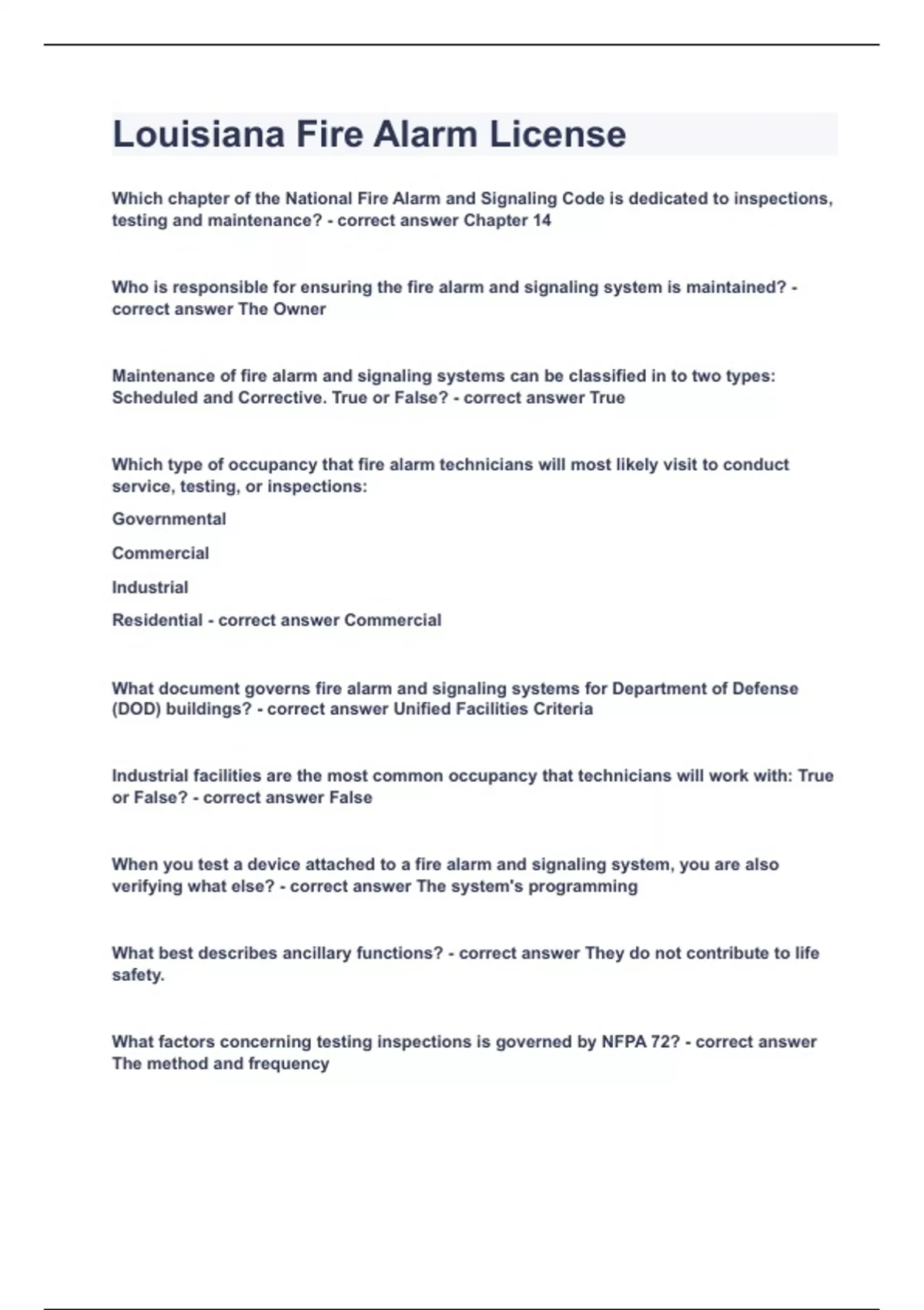 Louisiana Fire Alarm License|2023 LATEST UPDATE|ALREADY GRADED A|WITH 100% COMPLETE SOLUTIONS