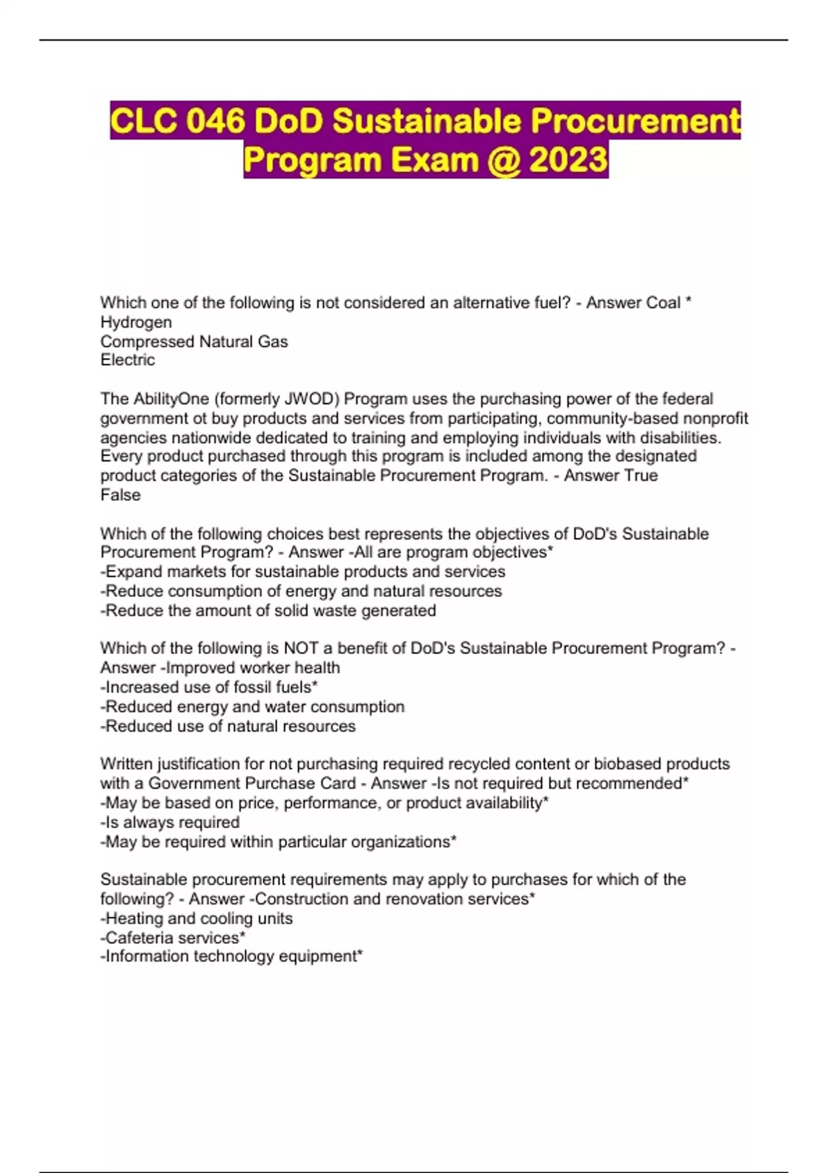 CLC 046 DoD Sustainable Procurement Program Exam @ 2023...
