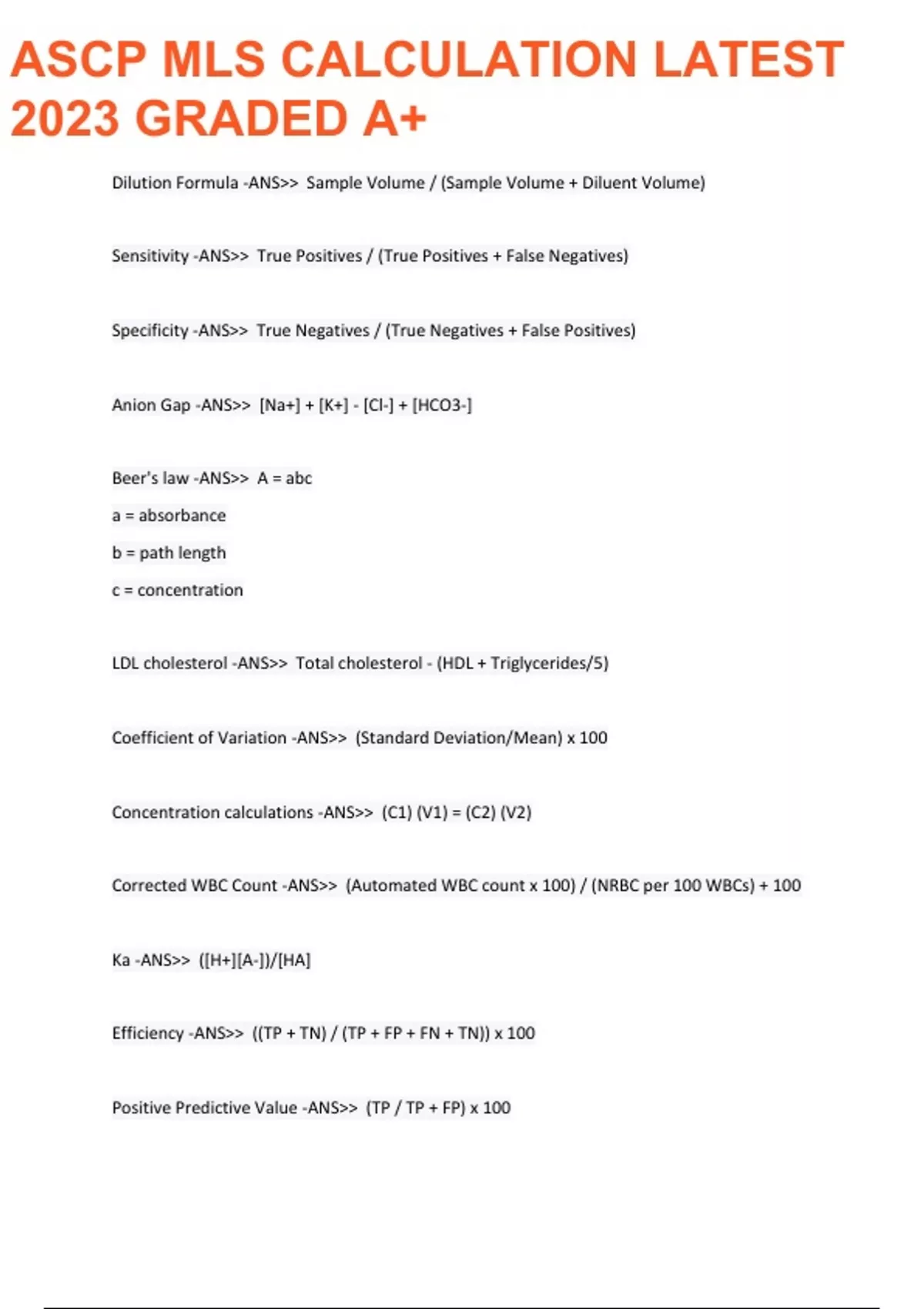 ASCP MLS Calculations QUESTIONS WITH COMPLETE SOLUTIONS
