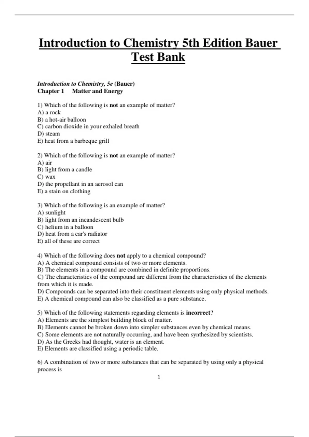 Introduction to Chemistry 5th Edition Bauer Test Bank Complete Test Bank Introduction to Chemistry 5th Edition Bauer Questions & Answers with rationales (Chapter 1-17) PDF File All Pages All Chapters Grade A+